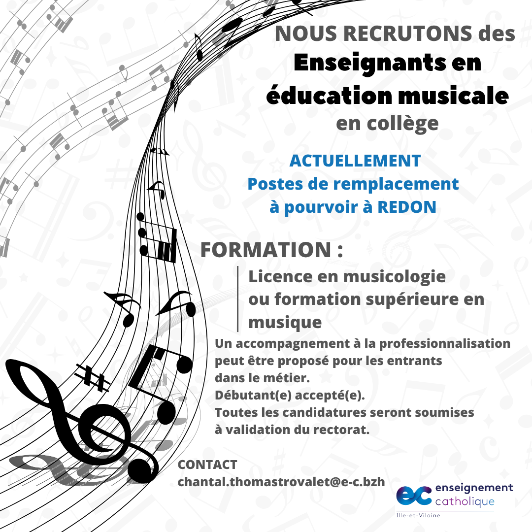 4 septembre 2025 ENSEIGNANT·E·S EN ÉDUCATION MUSICALE EN COLLÈGE Enseignement catholique d'Ille & VilaineIlle & Vilaine (35)